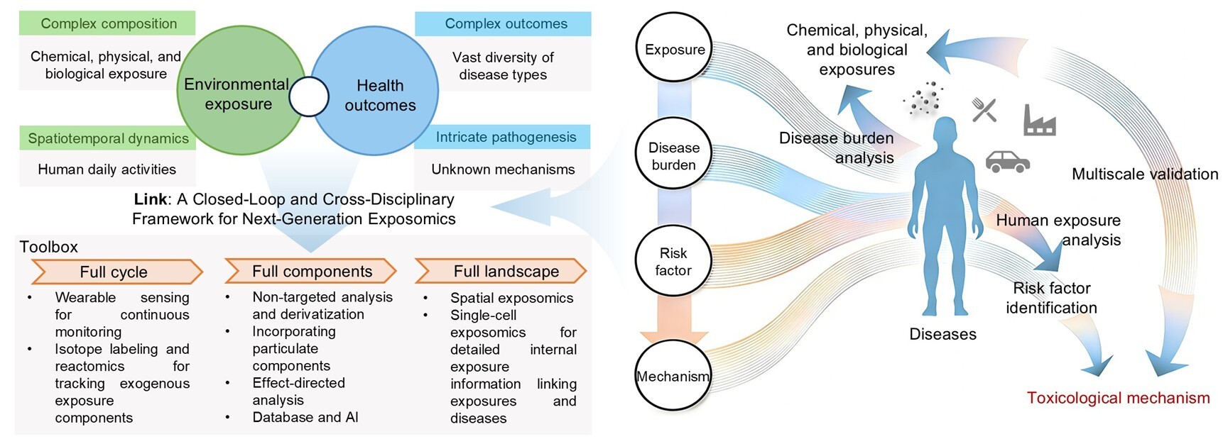 图2. 从环境暴露到健康结局的闭环式暴露组学研究框架